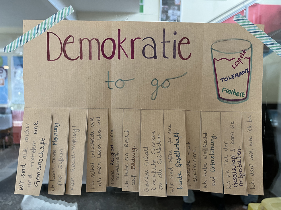 Demokratiewerte, die einem wichtig sind, können in journalistischen Beiträgen zum Ausdruck gebracht werden. So entstehen Magazine, in denen die Teilnehmenden ihre demokratischen Werte selbst reflektieren, aber auch für andere sichtbar machen.